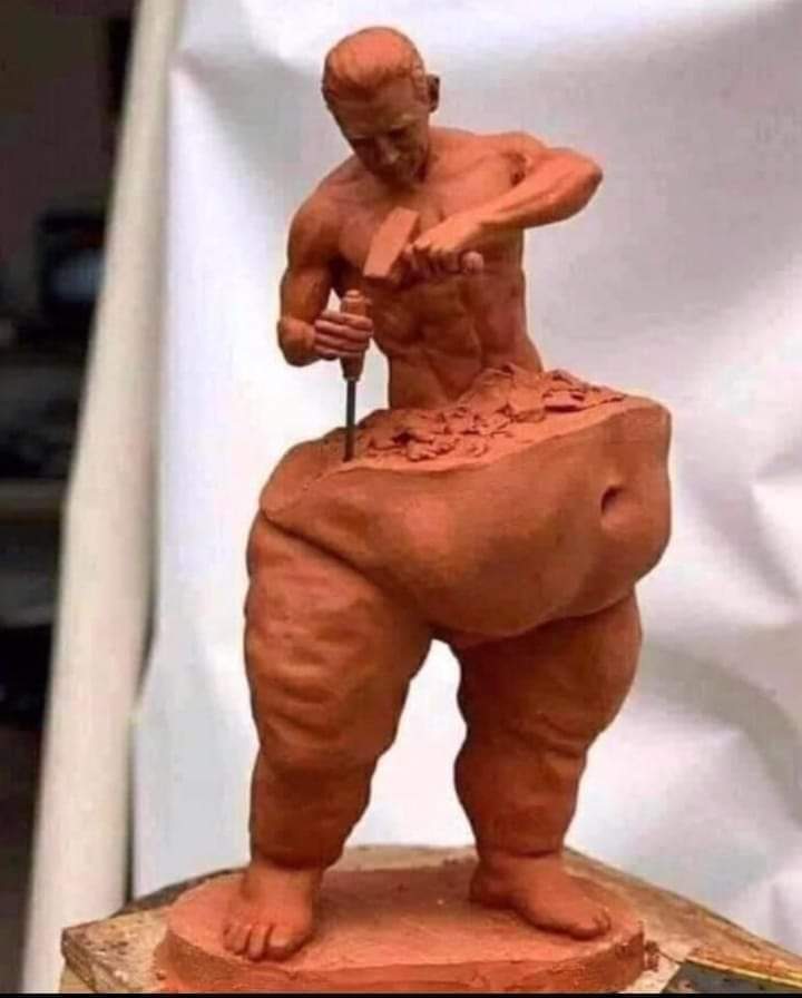 This interesting picture was shared by my classmate Annie Rogy, asking for befitting thoughts about the sculpture and its unknown creator. Its just that I was there on WhatsApp adding more screen time to my kitty, I thought to pen what I felt spontaneously.