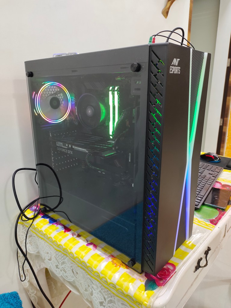 After a warm welcome and niceties my eyes fell on the desk top CPU. Majestically perched atop the table with colour evolving LED’s in it.