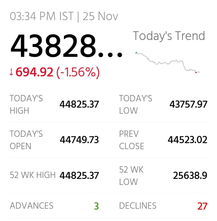 Sensex touched it’s all time high, then ended up with – 695 point down.