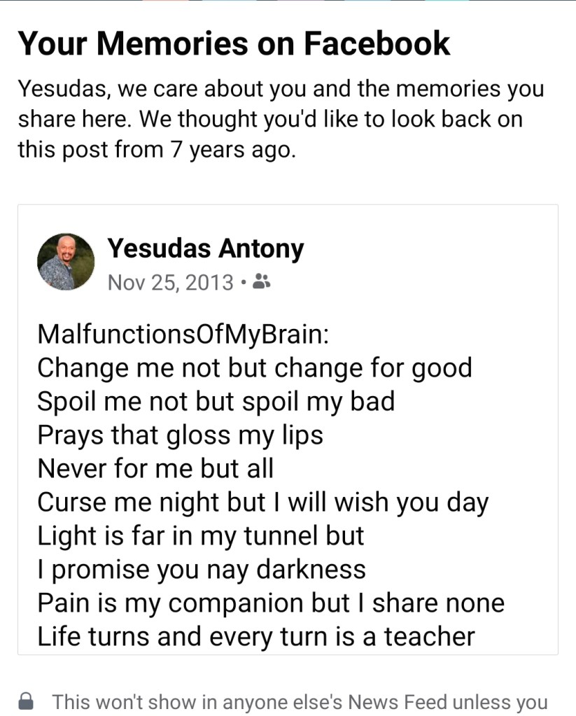 I don’t remember the reason for penning this. Most likely something akin to the Cyclone Nivar of Puducherry. Adapting change in life was easier, but a changing my Emotional Quotient was difficult.