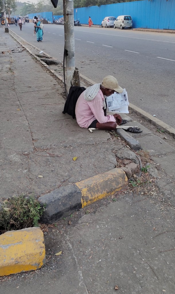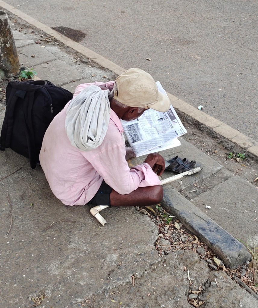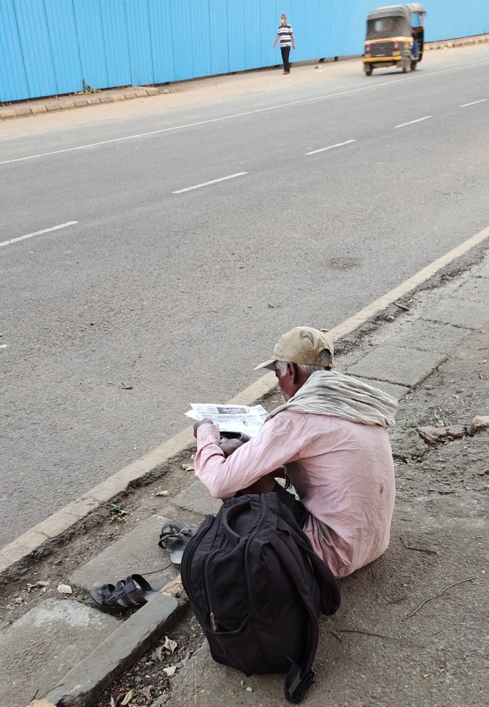 I was on my evening stroll when I spotted this gentleman sitting on the footpath completely engrossed in a newspaper.