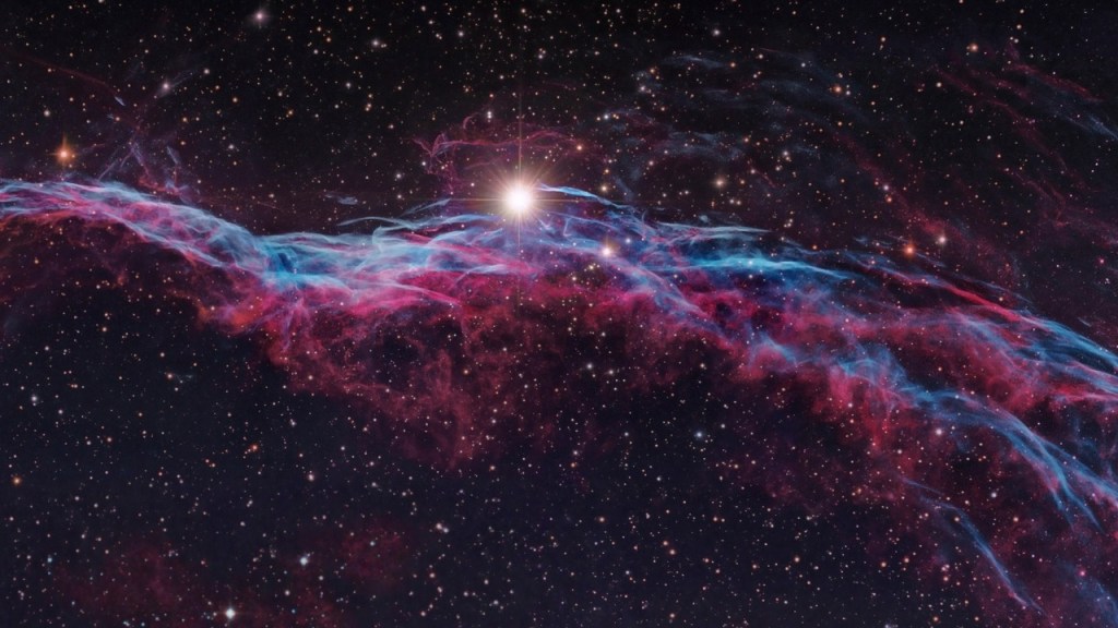 Witch’s Broom in the Western Veil of the Veil Nebula, it is part of the remnants of a star 20 times the size of our sun that went supernova, exploding roughly 8,000 years ago. Thank you @Microsoft & @bing