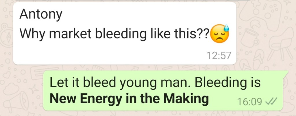 That reply was my first spontaneous repartee to lighten up the atmosphere. I am not a Stock Market expert, but I know how it works. Hence it is Market Analysis of #MalfunctionsOfMyBrain.
