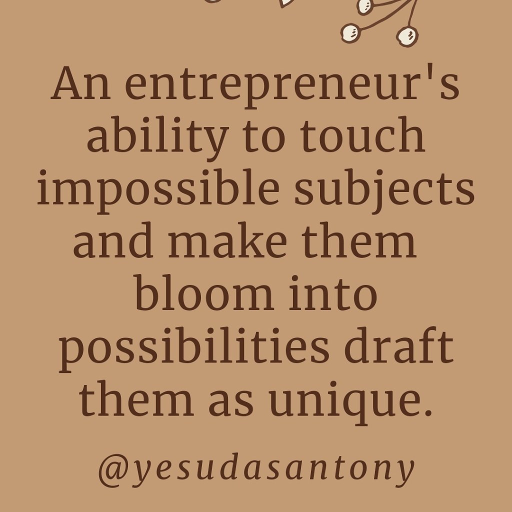 Entrepreneurship is not a single action an individual has to perform deliberately. It is often the impact of doing small things right from the beginning and joining them together to create a new one to everyone’s advantage.