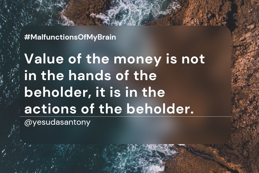 Value of the money is not in the hands of the beholder, it is in the actions of the beholder. I strongly believe so. From the very first earnings onwards what makes you Financially Independent is not the amount that you earn, but the deployment of earnings in a right manner.