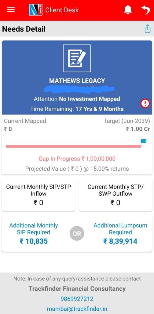 Today She started her investments in Equity Mutual Funds under my firm’s guidance at a sweet age of 75. Goal Planned is “Mathew’s Legacy” with a target amount of Rs 1,00,00,000 by the year 2039. Felt proud to have opened her Demat Account with NJ India Invest and now on a journey to build Wealth for the Third Generation.